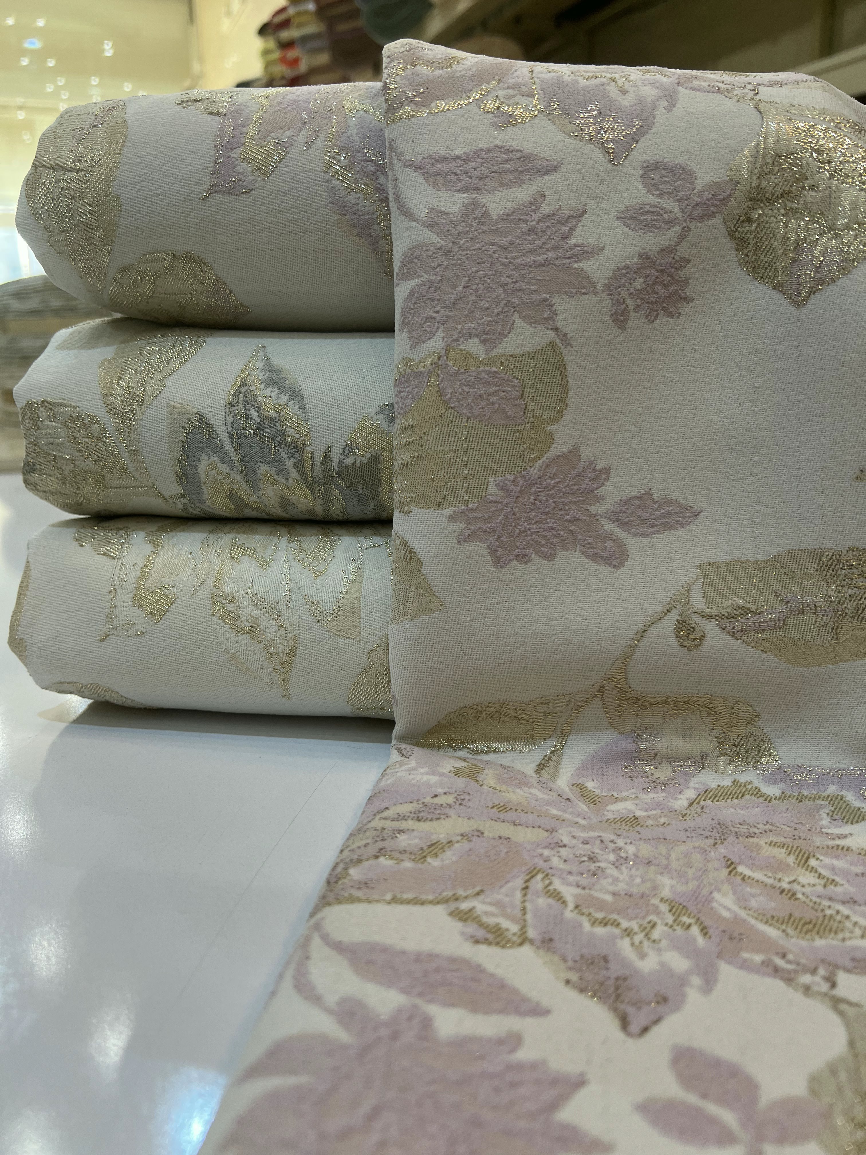 ژاکارد کش طرح ترک طرح گل متوسط گلبه ای