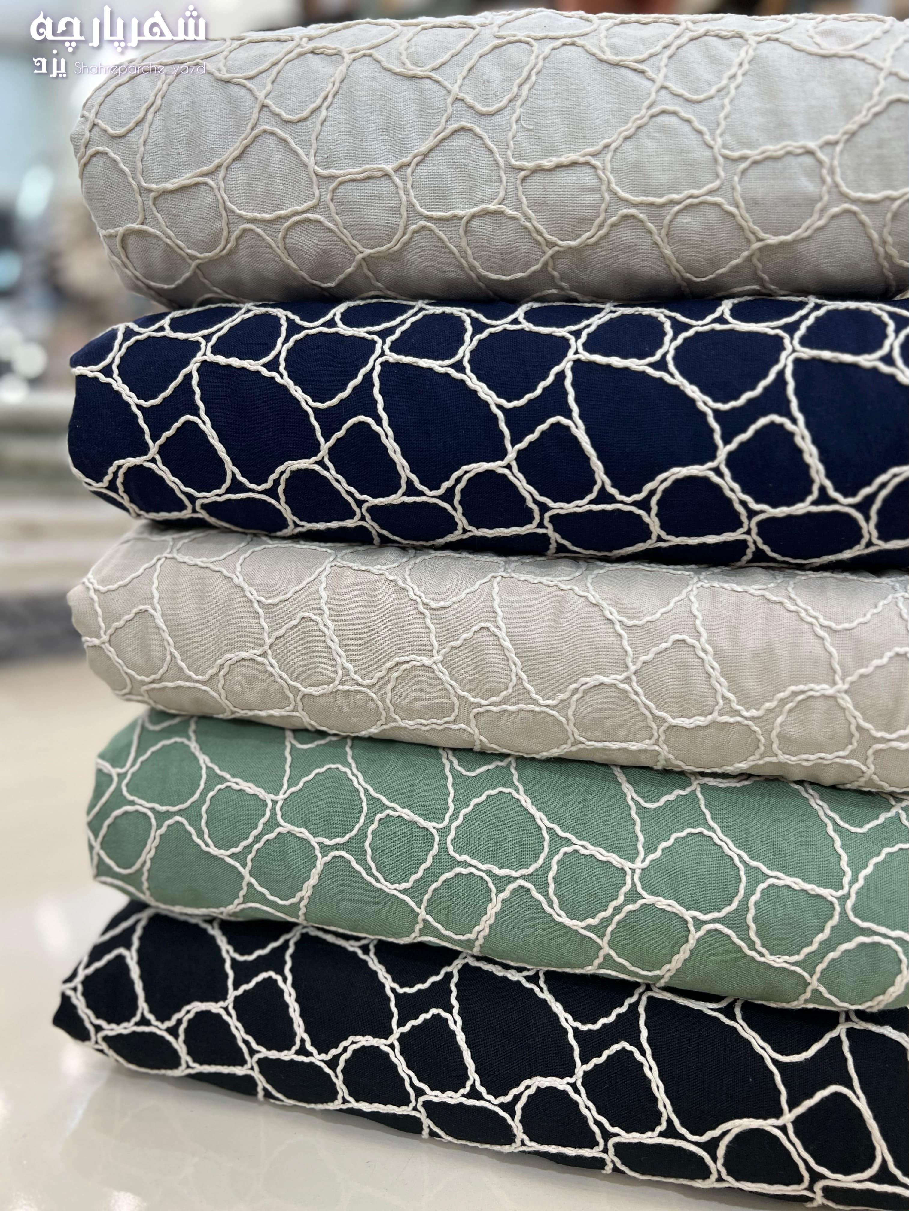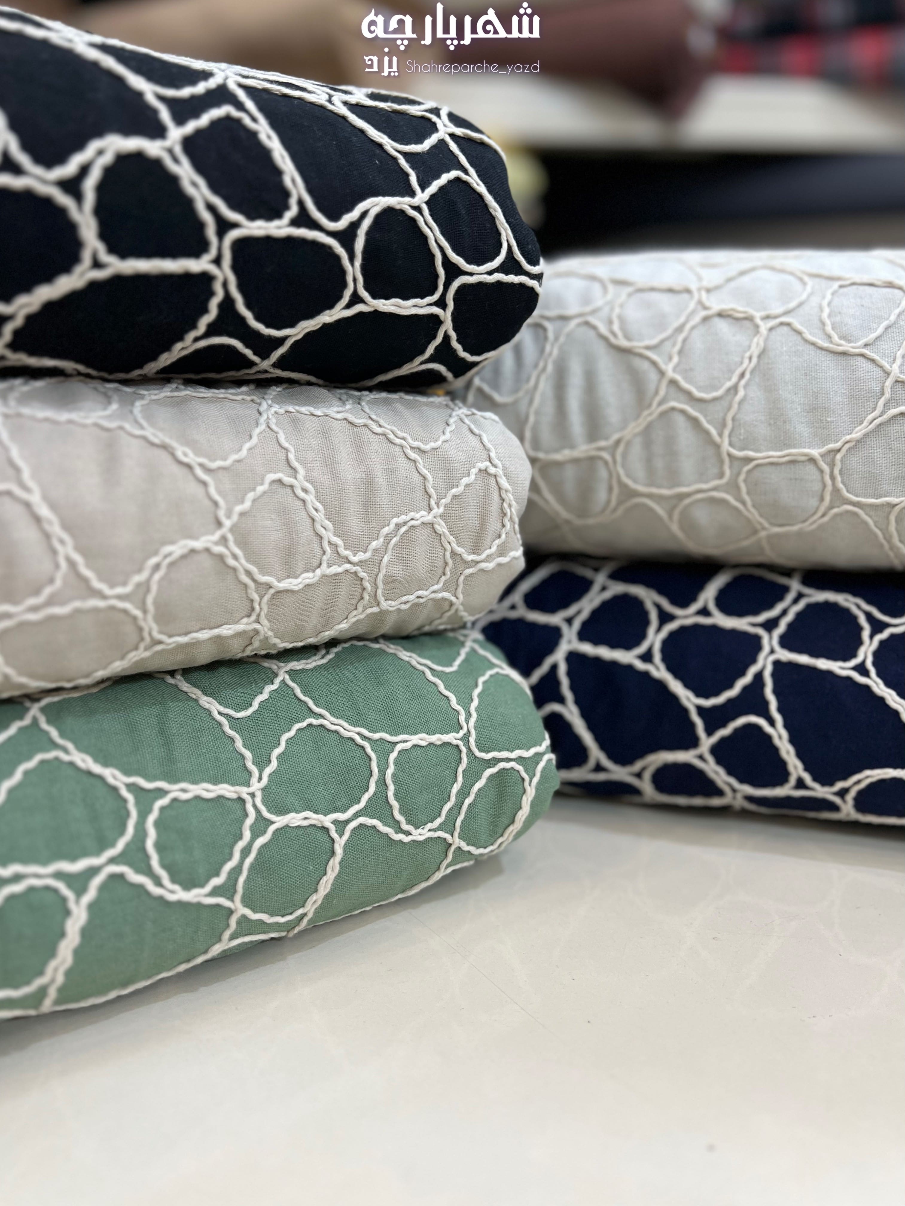 لنین قیطون دوزی طرح سنگی رنگ کرم نسکافه ای