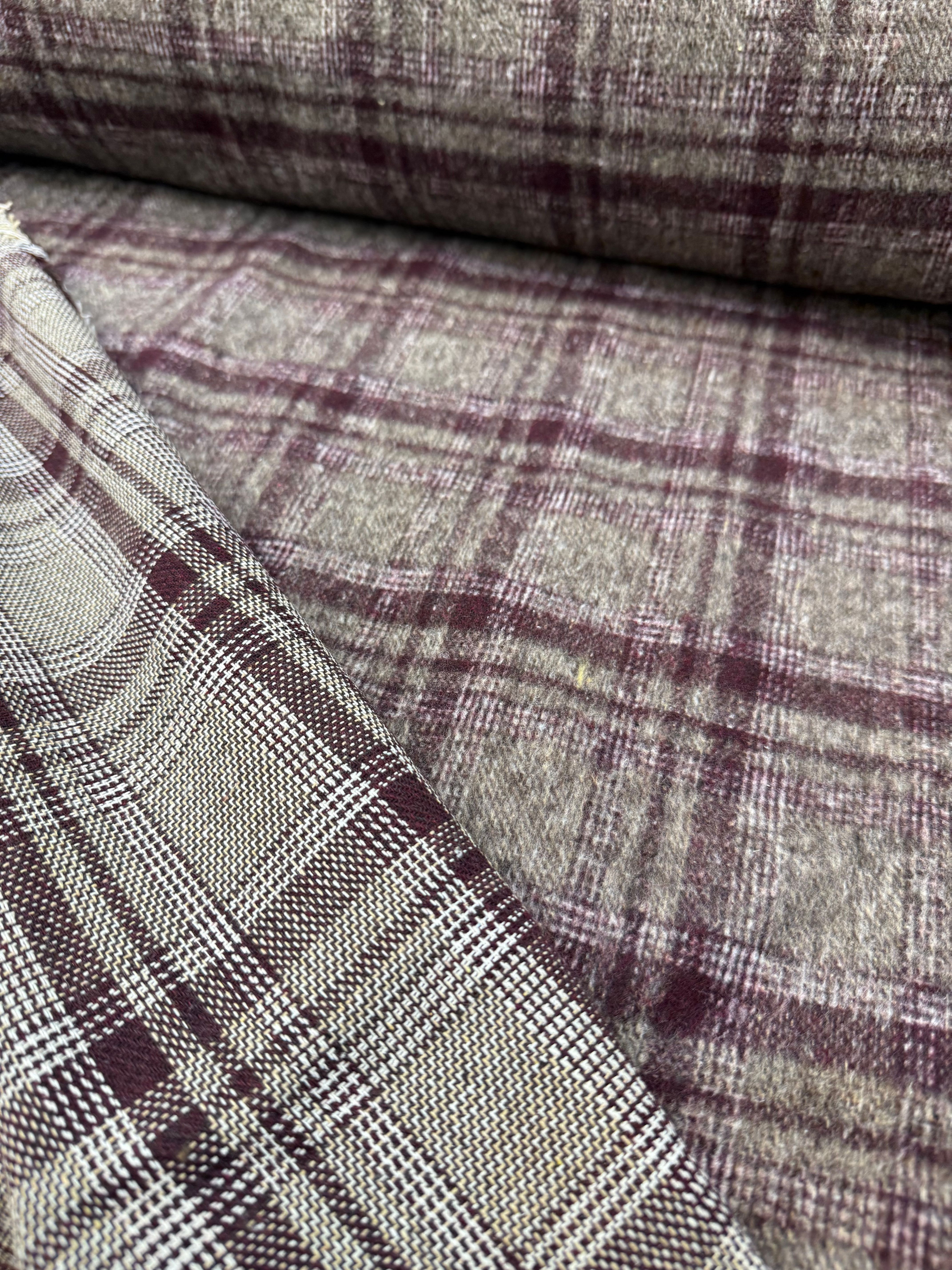 موهر پشمی چهارخونه طرح 4 رنگ قهوه ای زرشکی
