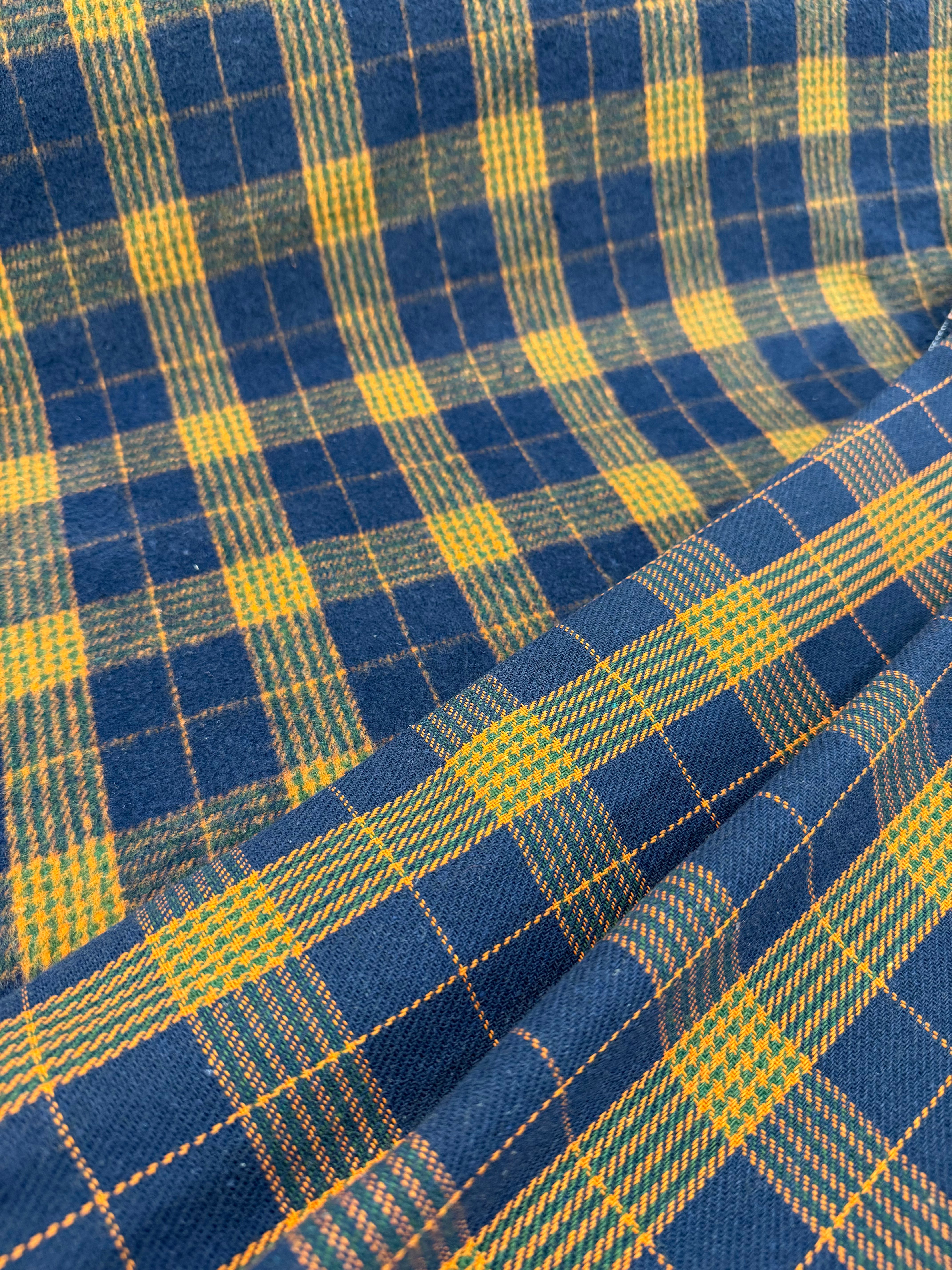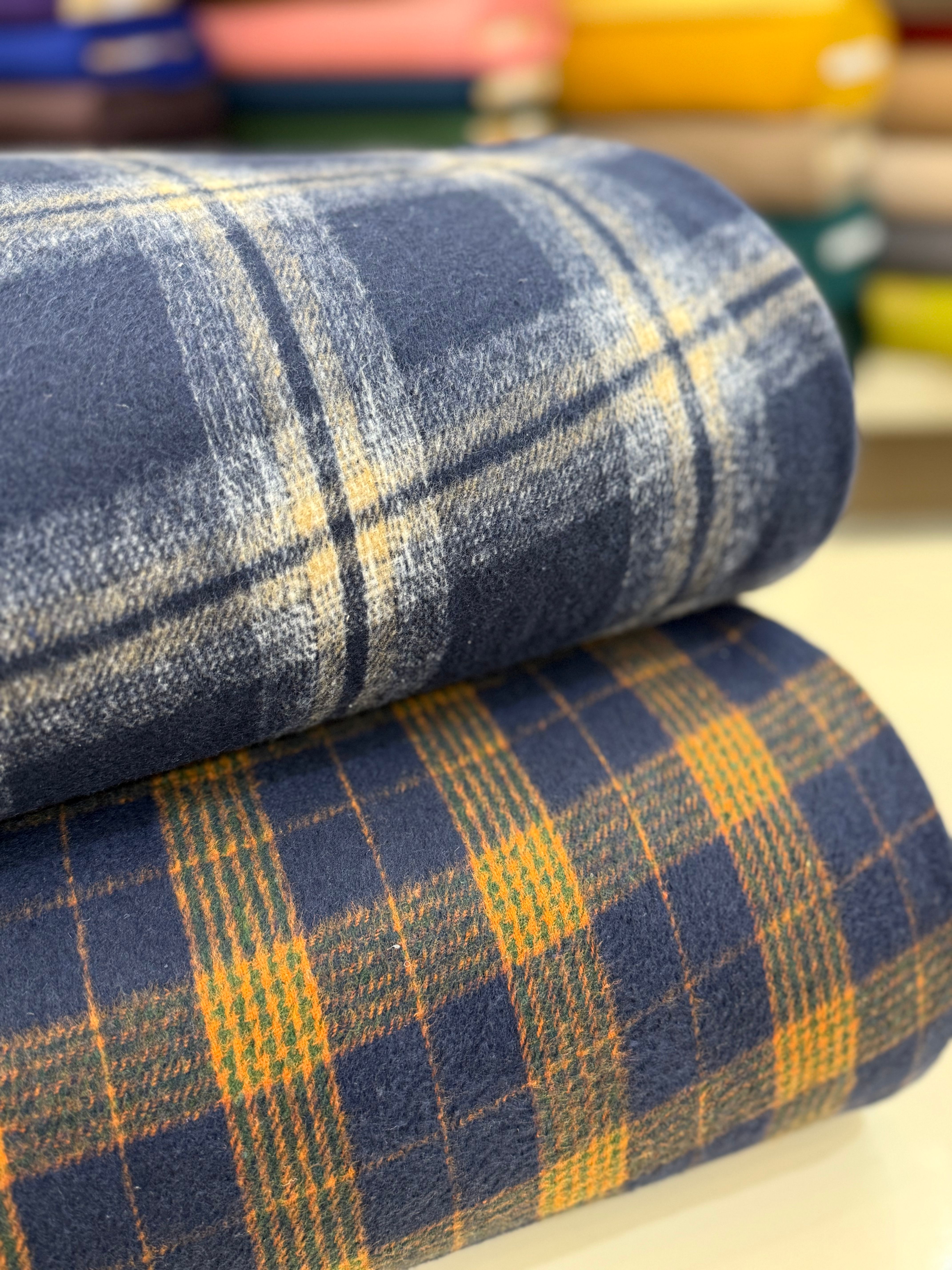 موهر پشمی چهارخونه طرح 5 سورمه ای خردلی