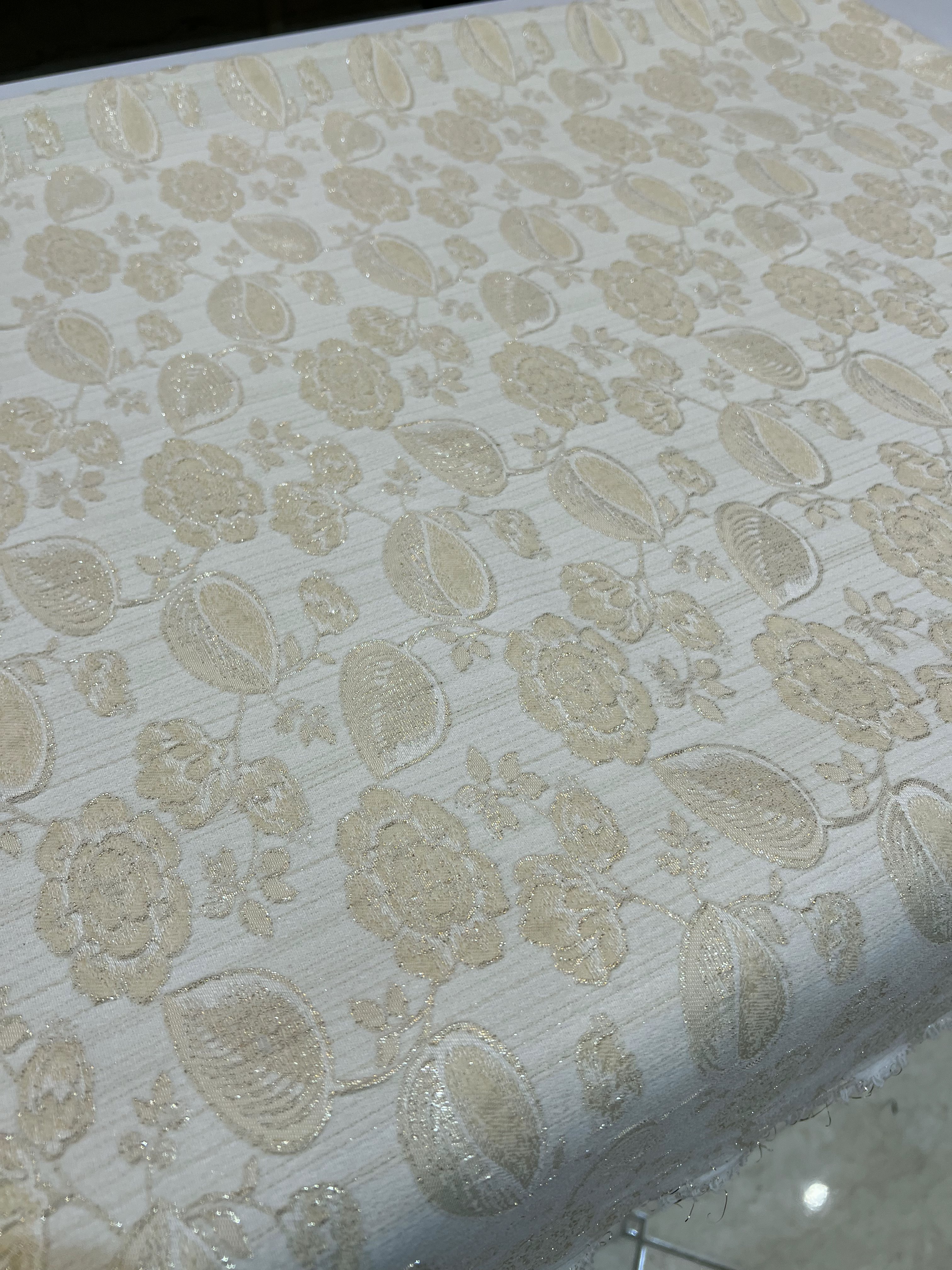 ژاکارد کش طرح ترک طرح گل ریز رنگ کرم طلایی